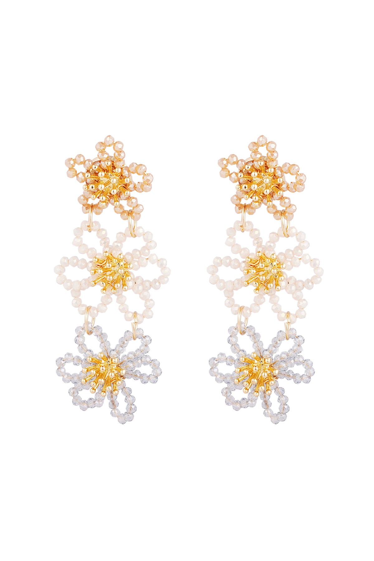 Onze prachtige bloemen oorbellen. Dit statement piece is beschikbaar in twee verschillende kleuren.