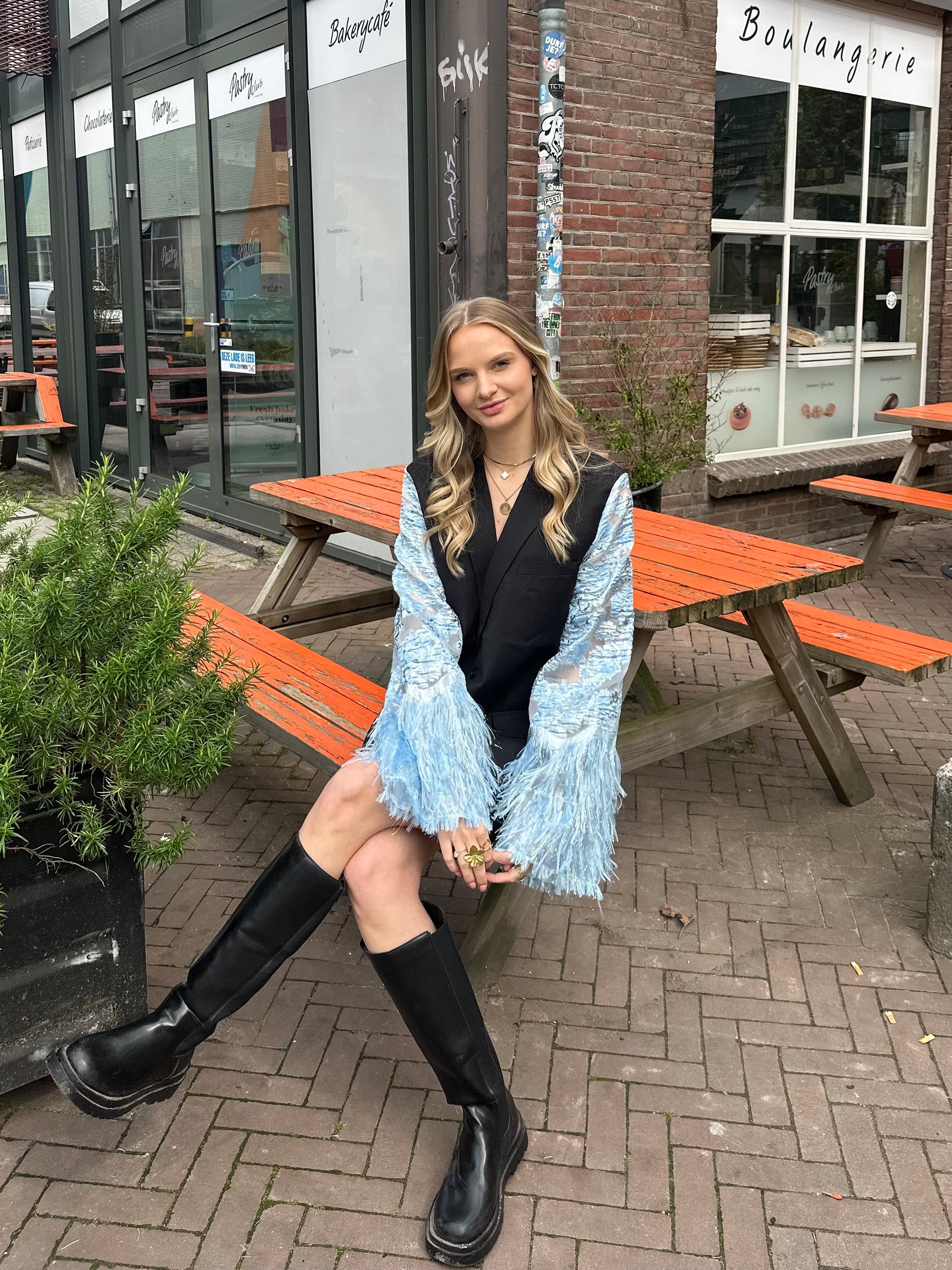 One size blazer met een oversized fit, passend van maat S t/m XL. De mouwen worden door mij met de hand gemaakt van een prachtige stof en in de blazer gezet. Hierdoor kan het patroon of de plaatsing iets afwijken van de foto, elk blazer is uniek.