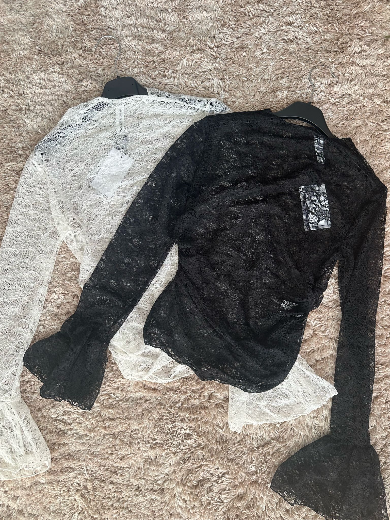 Deze set bevat de Fleur top wit en de Fleur top zwart. Met deze set bespaar je maar liefst 10 euro! De topjes hebben lange flared mouwen. Erg leuk om te combineren met een blazer of topje. One size van maat 34 t/m 42.